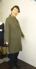 福島と仙台のご姉妹がまた来てくださいました。着物の生地でコートを、チュニックもお作りいただきました。コートには衿を付け、ストールもお仕立てしました。アトリエ.AKIKOのプレタのお買い上げも。